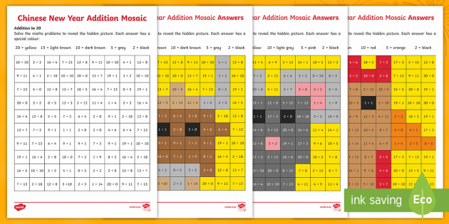 Chinese New Year Animals Addition Mosaic Teacher Made